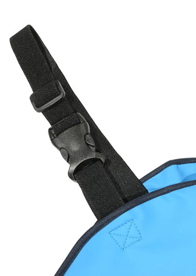- Whilst the dungarees have adjustable elastic shoulder straps, poppers at the waist and elastic stirrups